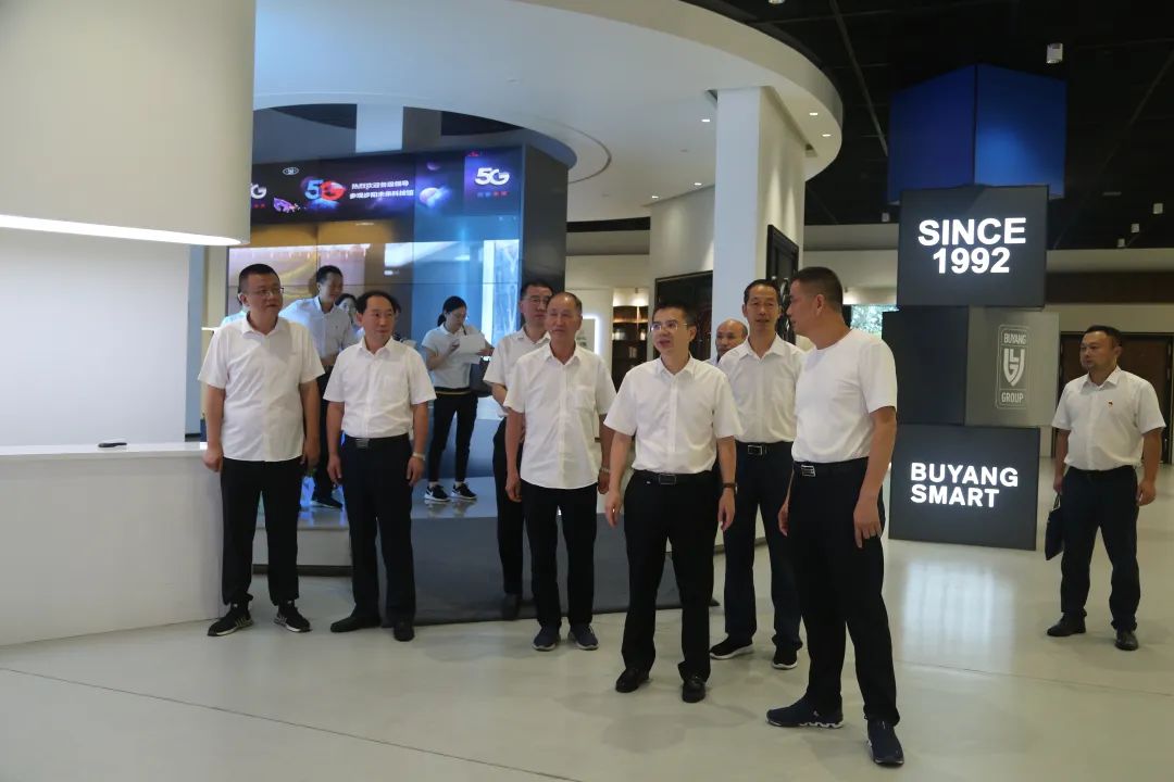 In the afternoon of July 27th, Xu Xiaobo, a member of the Party Committee and deputy director of Zhejiang Provincial Department of Justice, and his party visited Buyang Group for research and guidance, visited the office area of Buyang Group, understood the development overview of Buyang Group, and exchanged views with Xu Buyun, the chairman of Buyang Group.