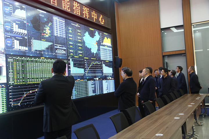 The leaders of the delegation watched the big data intelligent command center and learned that the buyang Big Data Center can collect data such as workshop output, quality, energy consumption, processing accuracy and equipment status in real time, and correlate them with orders, storage and logistics, so as to realize full traceability and abnormal alarm of production and sales process.