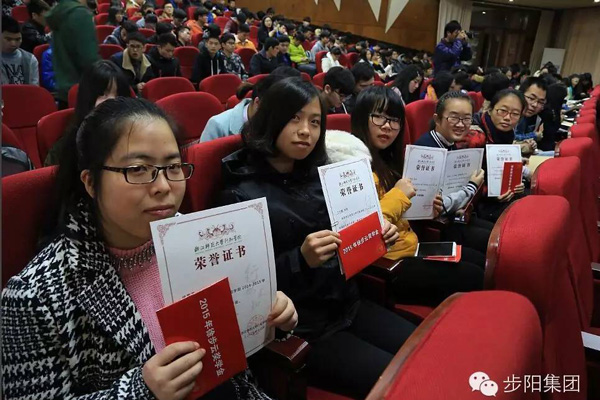 2015年12月5日上午,浙江师范大学“徐步云800万奖学金”颁奖发放大会在浙江师范大学行知学院隆重举行。集团董事长徐步云、党委书记程明松出席并为获奖教师和学生颁发奖学金,此次受益师生75人,奖学金共计20万元整,徐董事长对获奖师生表示祝贺,并期望受奖教师要继续“燃烧自己,点亮别人”,学生要“行而求知,学以致用,传承爱心,回报社会。