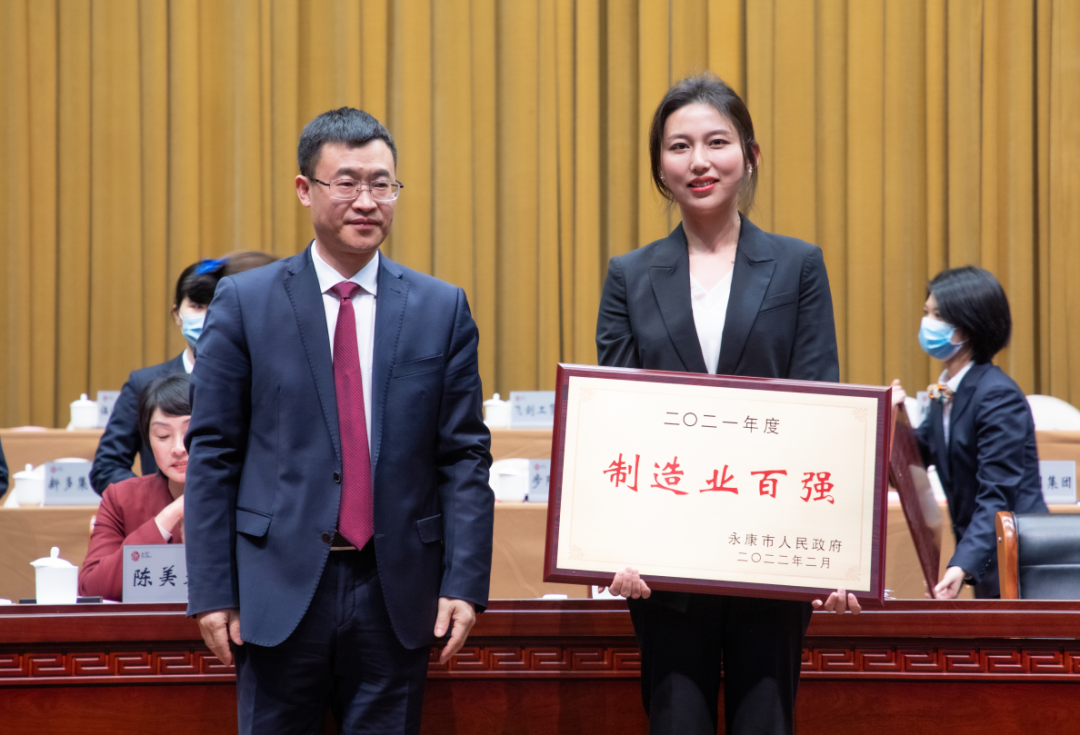 Ltd. won five awards, including "Top 100 Yongkang Manufacturing Enterprises in 2021", "Top 10 Yongkang Science and Technology Innovation Enterprises", "National Green Manufacturing Enterprise", "Provincial Intelligent Factory" and "Provincial Water-saving Benchmark Enterprise".