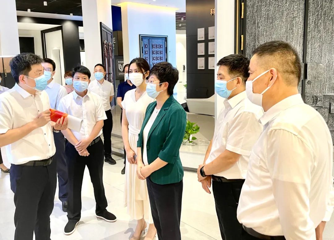 Under the introduction of Chairman Xu, Chairman Cai understood in detail the current production and operation, technological innovation and market strategic layout planning of Buyang, and praised and affirmed Buyang Group's deep plowing of the door industry over the years, focusing on the real economy and driving the economic development of Yongkang City. After hearing the introduction of the door culture and door story by Mr. Xu Jingjun, especially a door can be customized through the use of a variety of materials on the surface, he expressed his high recognition of Buyang's market demand control and product technology research and development innovation in recent years, and the establishment of Buyang's unique research and development route and corporate competitiveness.